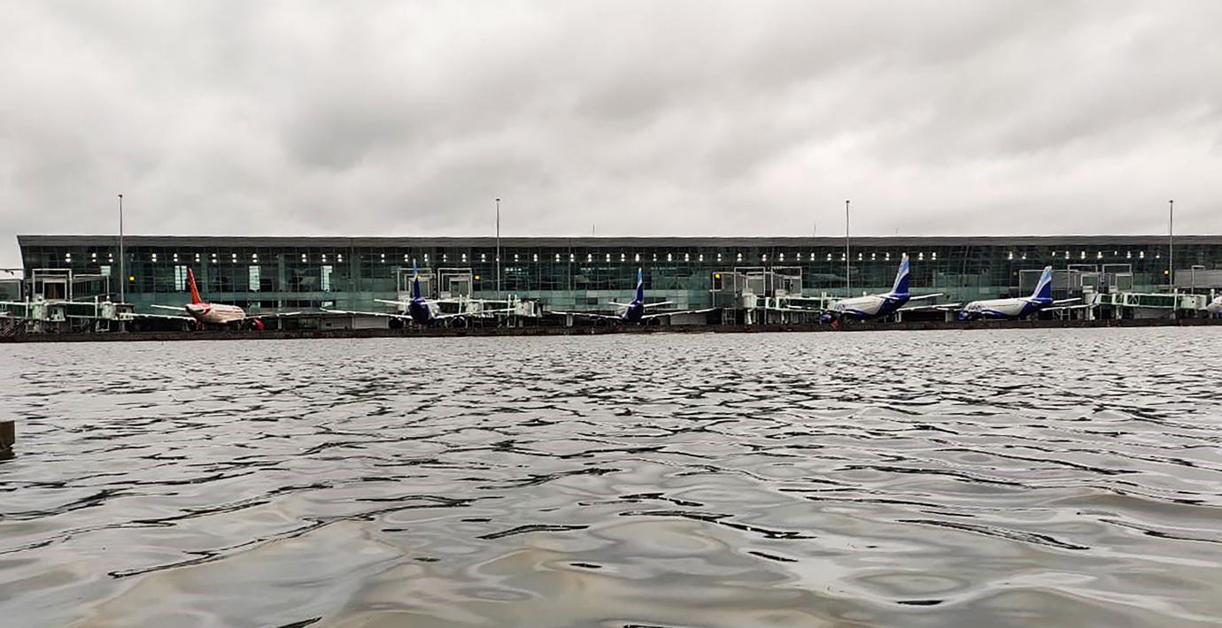 Översvämmat på Calcuttas flygplats efter cyklonen