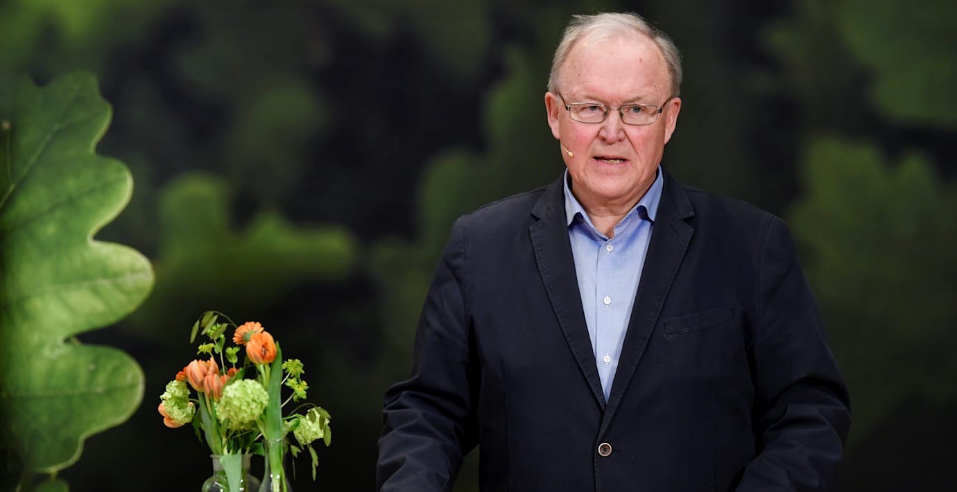 Göran Persson under Swedbanks årsstämma i går. (Henrik Montgomery/TT)