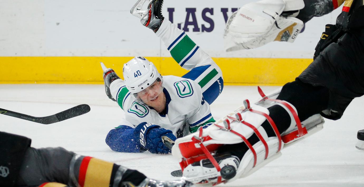 Elias Pettersson bjöd på ett speciellt mål i matchen mot Las Vegas Golden Knights. Han slängde sig raklång och fick in pucken med en backhand, skriver Sportexpressen.