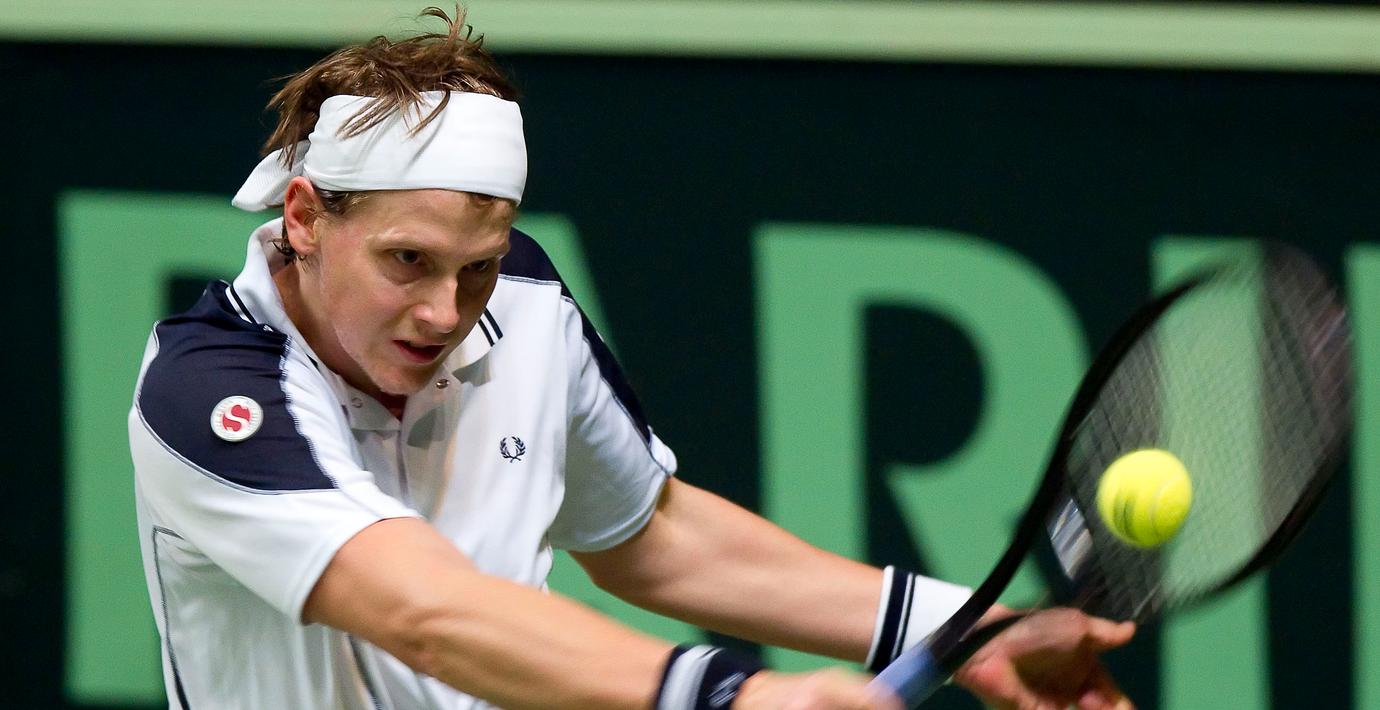 Joachim "Pim-Pim" Johansson vann första matchen i sin comeback i Stockholm Open. Den före detta världsnian slog kanadensaren Erik Chvojka i den första kvalomgången med 6-3, 7-5.
