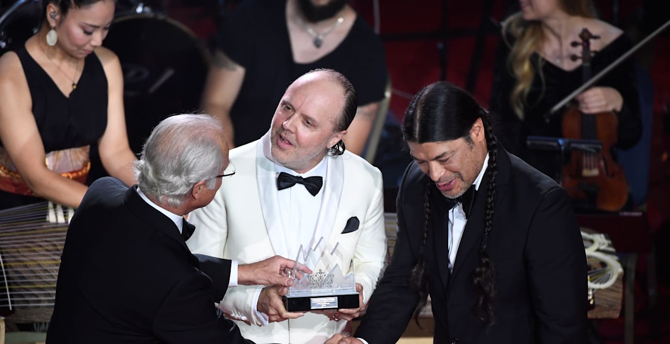 Metallicabasisten Robert Trujillo var märkbart rörd och tackade familj och kollegor när han tog emot Polarpriset av Kung Carl XVI Gustaf under torsdagens ceremoni, rapporterar TT. Trummisen Lars Ulrich avrundade tacktalet i en skämtsam ton: