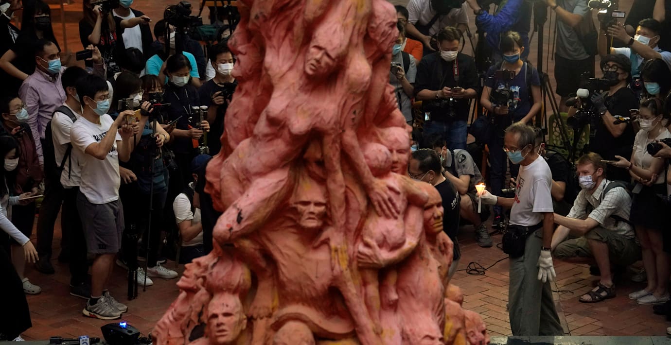 Den åtta meter höga statyn, som har stått på universitetsområdet i över 20 år, uppfördes till minne av protesterna och massakern på Himmelska fridens torg i Peking 1989.