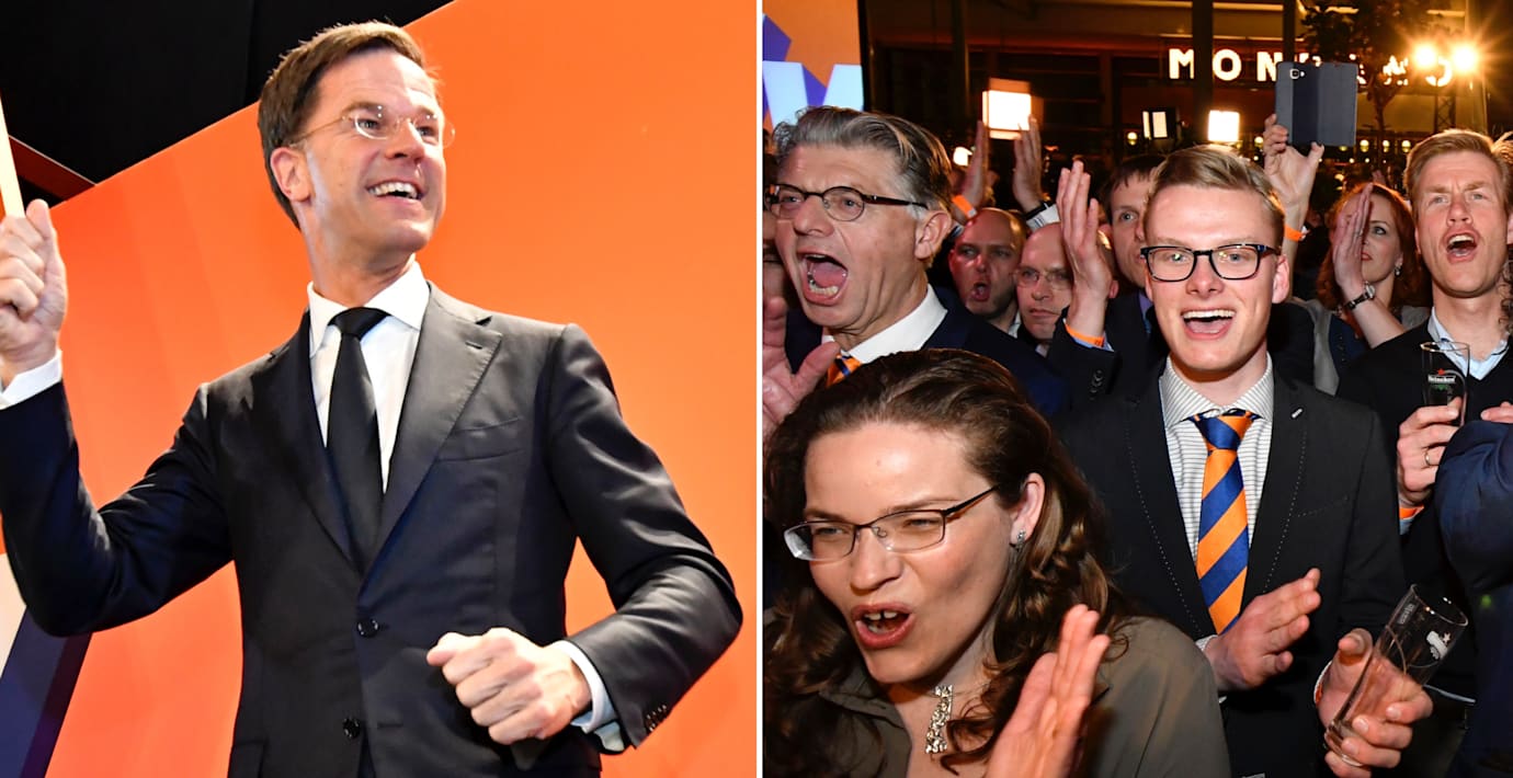 Premiärminister Mark Ruttes parti VVD slog högerpopulisten Geert Wilders i det nederländska valet. När 94 procent av rösterna hade räknats hade VVD fått 33 platser i parlamentet, vilket är 10 färre än tidigare. Samtidigt ökade Wilders parti sitt mandat från de 15 man fick i förra valet till 20, skriver CNN.
