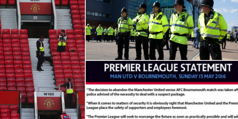 Dagens match på Old Trafford ställdes in på grund av ett bomblarm.