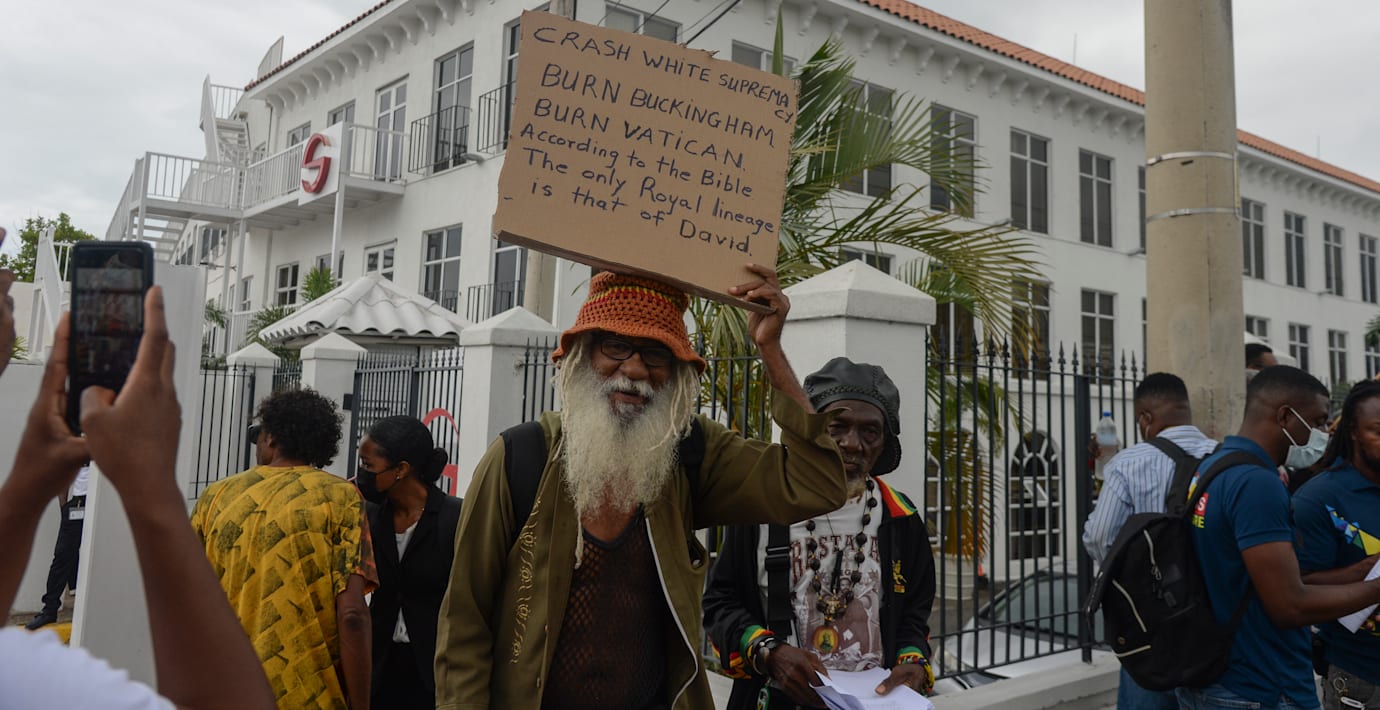 Turnén har kantats av protester mot kungahuset och krav på ursäkter för slaveriet i regionen under den brittiska kolonialtiden.