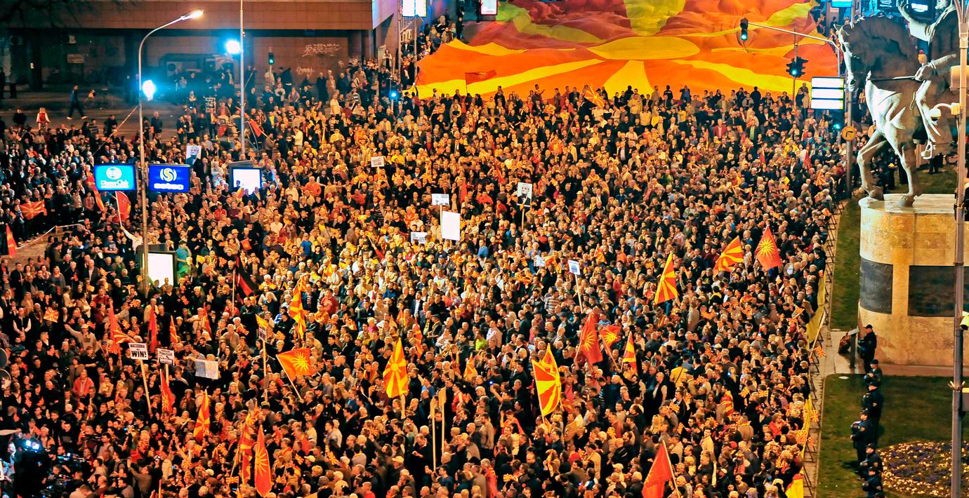 Protester mot planer på koalition i Makedonien