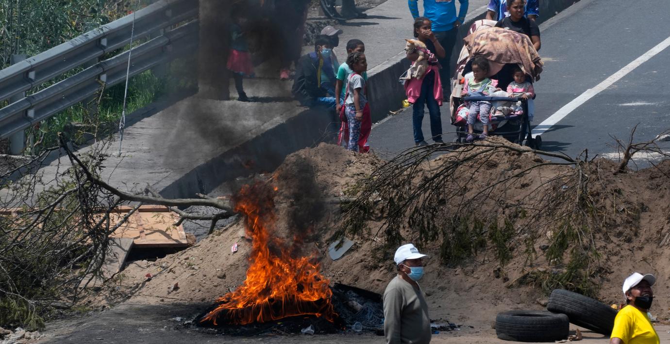 En av många vägspärrar som har satts upp av befolkningen i landet. (Dolores Ochoa / TT NYHETSBYRÅN)