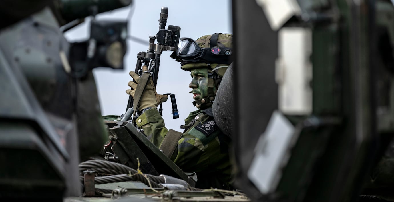 Martin Rapp, värnpliktig, konstaterar för radion att de inkallade tränas för krig.