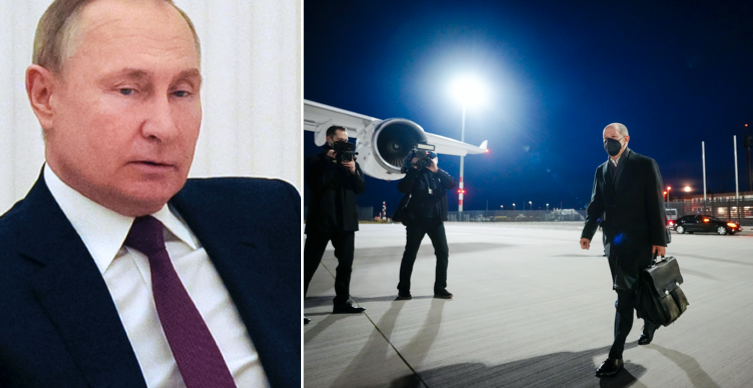 Vladimir Putin under mötet med Olaf Scholz i Moskva/Scholz på väg till Moskva (TT)