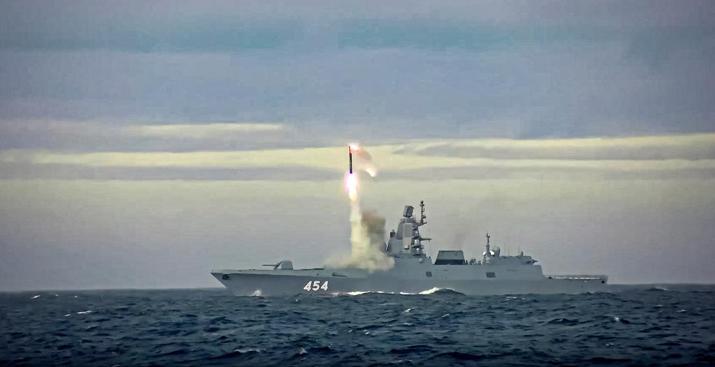 Den ryskutvecklade hypersoniska sjömålsroboten Zircon kan nå en hastighet på 9 800 kilometer i timmen, nio gånger snabbare än ljudets hastighet, och kan avfyras från land eller till sjöss. Putin säger i sitt tal att vapnet ”saknar motstycke i världen”.