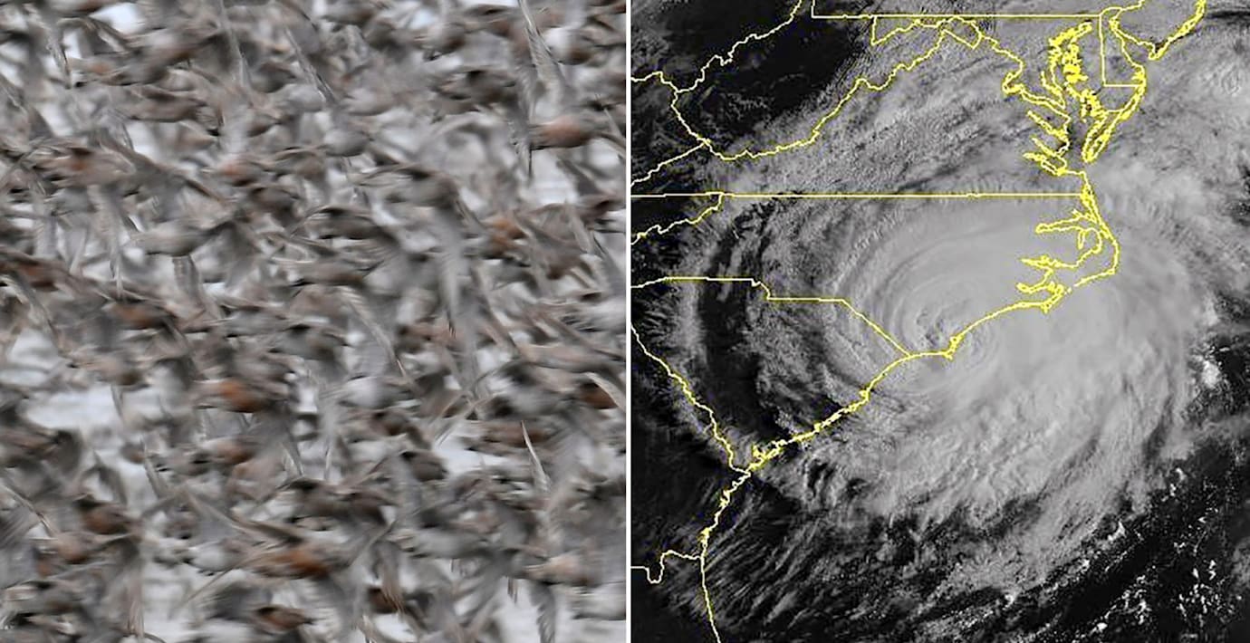Fenomenet är inte ovanligt. Under september korsar hundratusentals flyttfåglar Atlanten på väg mot sydligare breddgrader – och när en orkan eller storm blåser förbi löper de stor risk att sugas in i den och till slut hamna det förhållandevis lugna ögat.