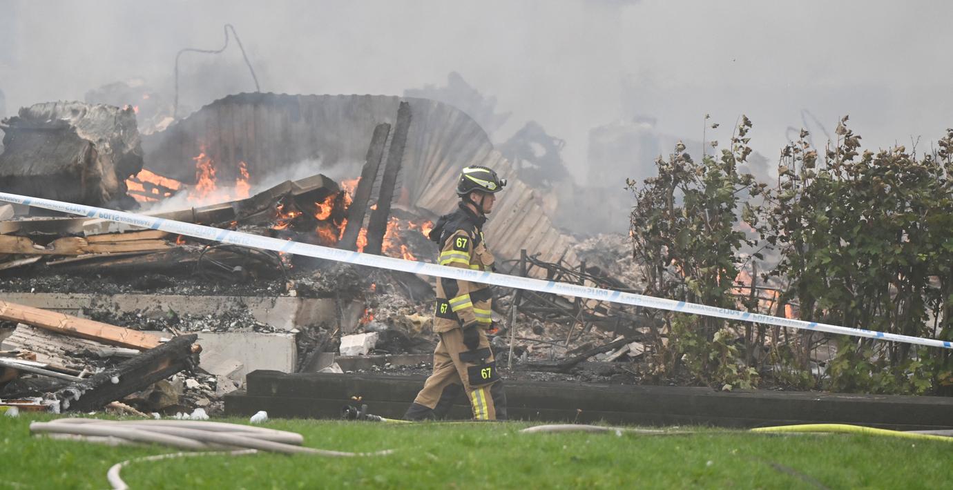 Alla åtta lägenheter i radhuslängan totalförstördes. Branden spreds också till en närliggande länga, där en lägenhet fick skador, skriver TT.