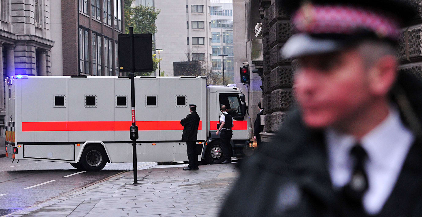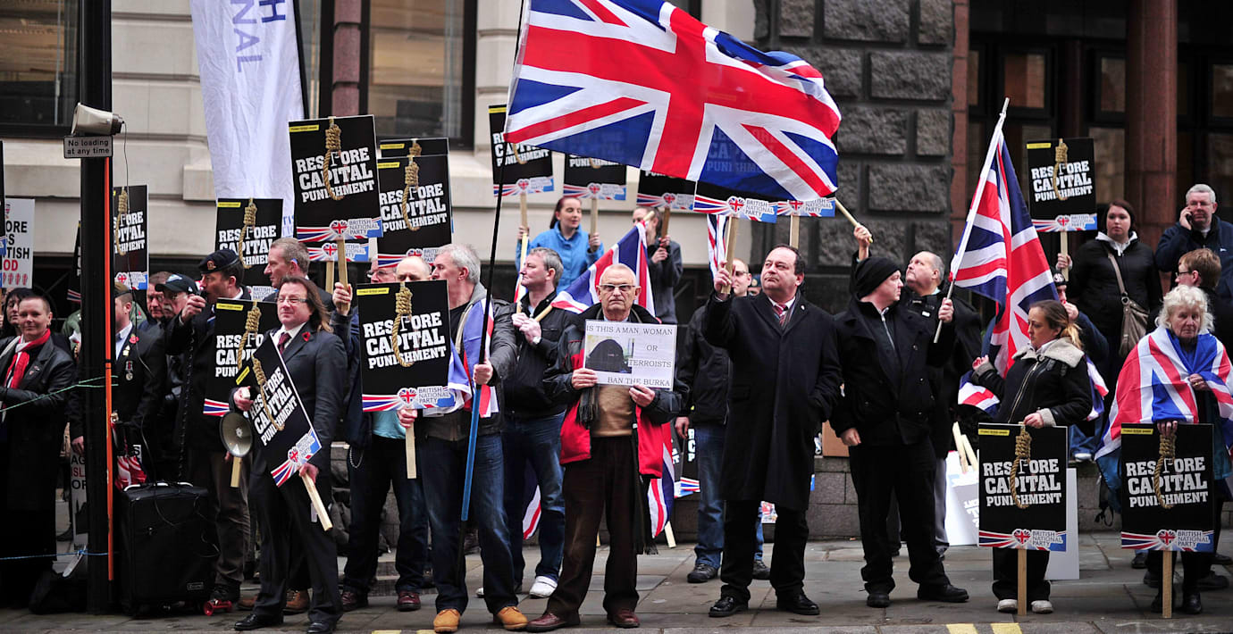 Utanför rättssalen hade i dag ett 30-tal soldater samlats med plakat med texten ”Veteraner mot islamiseringen av Storbritannien”.
