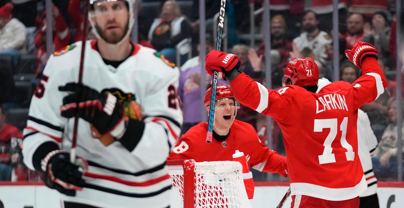 Svenske Lucas Raymond kvitterade i tredje perioden och hjälpte Detroit till seger mot Chicago i nattens NHL-ishockey, skriver TT.