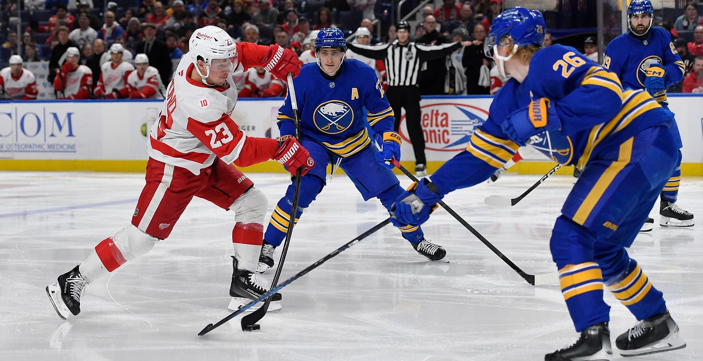 Detroit tog i natt en blytung 5–2-seger på bortaplan mot serieledande Buffalo. Den svenske forwarden Lucas Raymond gjorde 2–0-målet i mitten av den första perioden och utsågs till matchens bästa spelare.