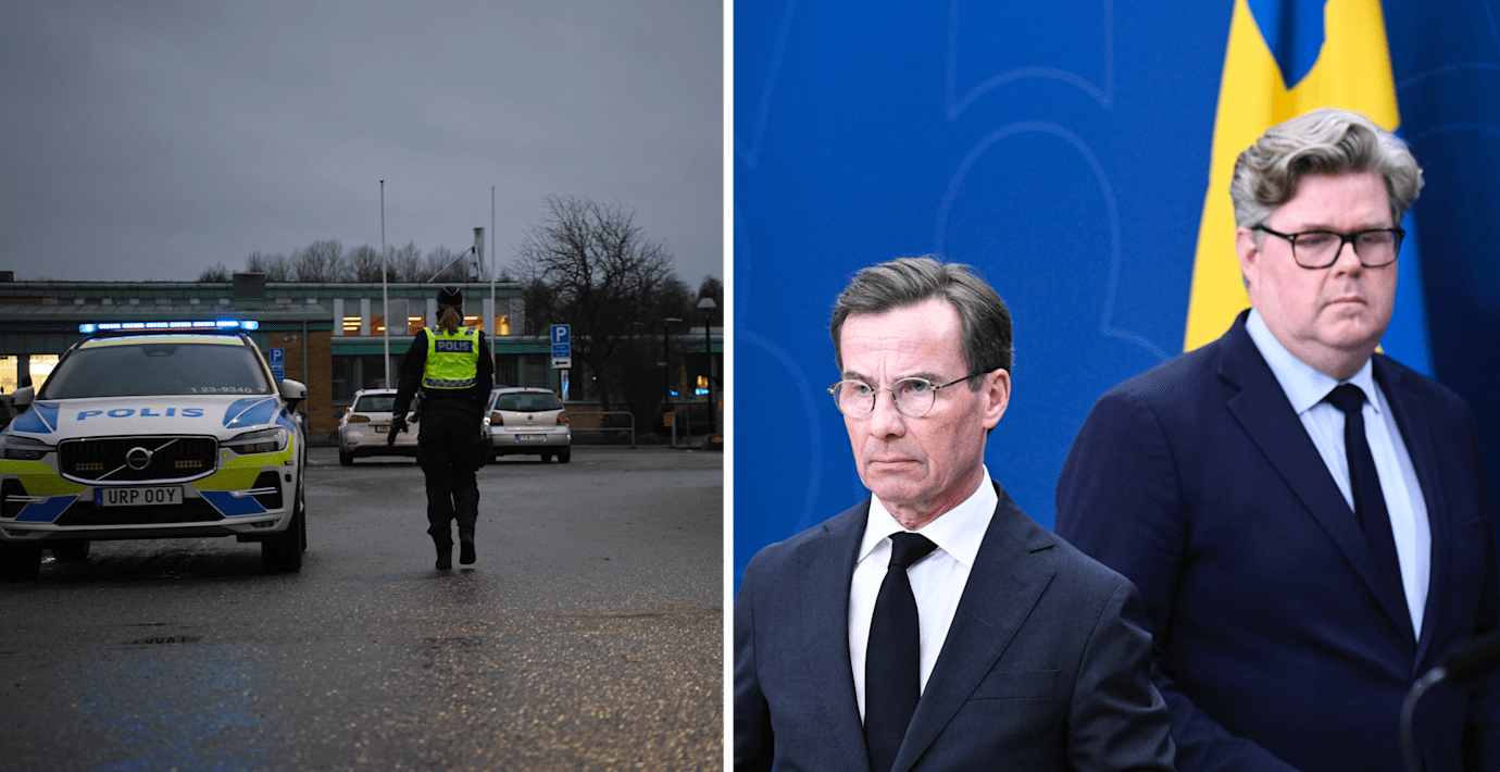 Polisinsatsen i Örebro/Statsminister Ulf Kristersson (M) och justitieminister Gunnar Strömmer (M). (TT)