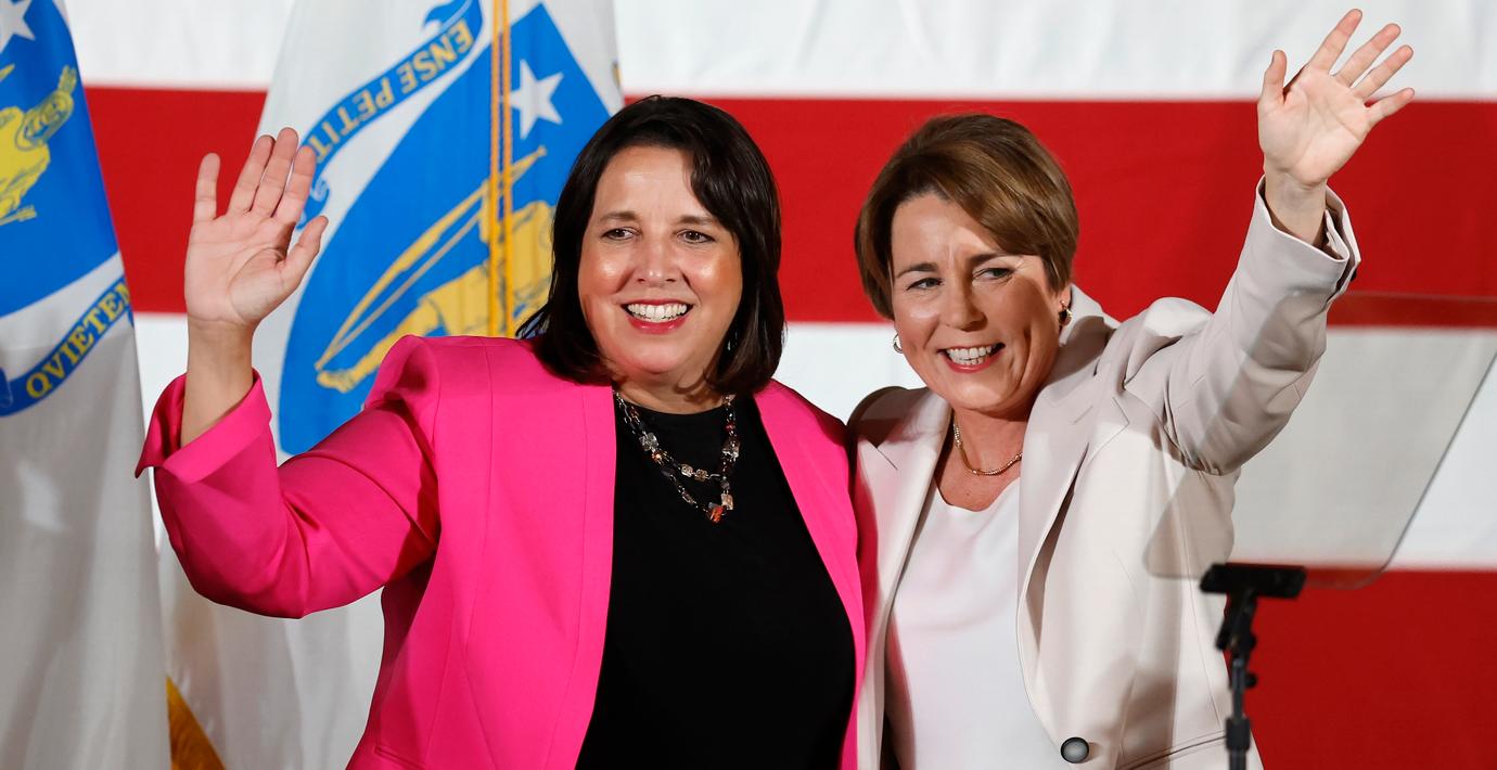 Demokraterna Kim Driscoll och Maura Healey. (Michael Dwyer / AP)