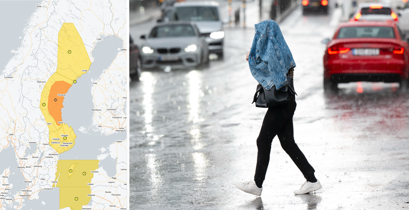 Ovädret blir som värst mellan Gävle och Härnösand där SMHI har utfärdat en orange varning för ”skyfallsliknande regn”. Där varnar Martin Kjell för att källare och liknande kan översvämmas, men även längre söderut får man förvänta sig rejält med regn.