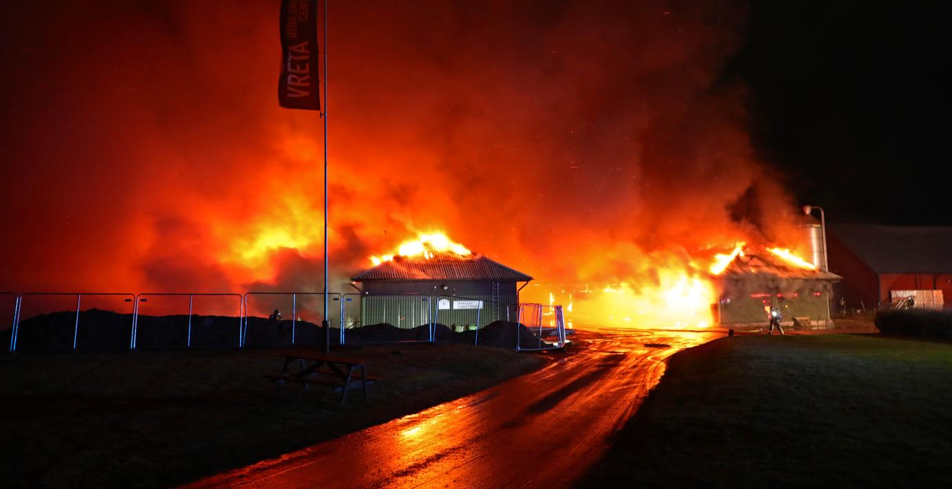 Enligt henne är ladugården helt nedbrunnen och alla mjölkkor brann inne. Utöver det är flera andra lokaler rökskadade.