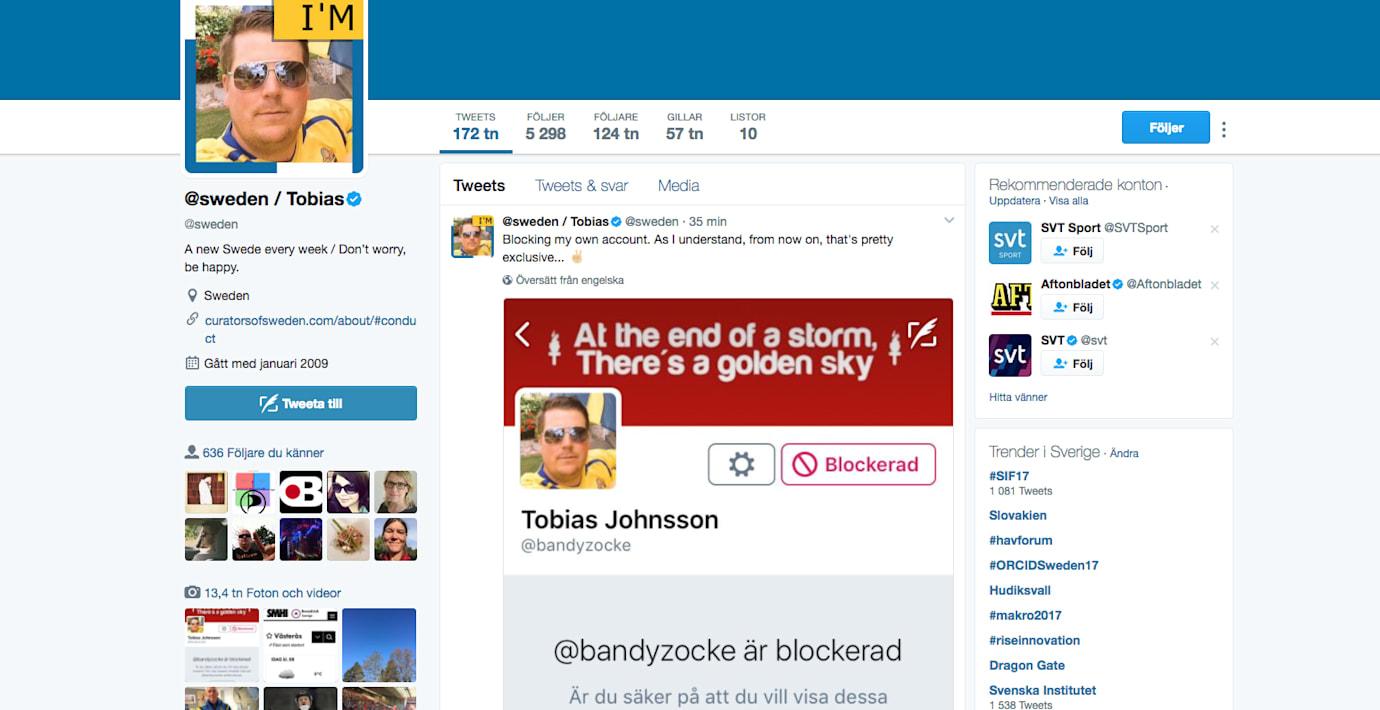Förra veckan blockerade Twitterkontot @sweden, som drivs av Svenska Institutet (SI), cirka 14 000 konton på Twitter. Enligt institutet rörde det sin om näthatare, men det verkar som om alla till höger om Miljöpartiet blev klassade som ”misogyna bögknackarrasister”, skriver Margit Richert i en krönika i Svenska Dagbladet.
