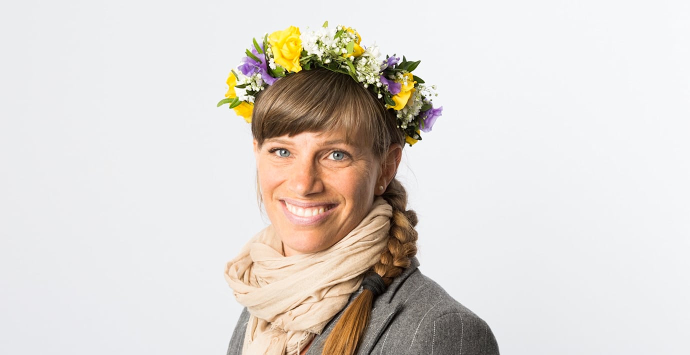 Helene Ripa som förlorade sitt ena ben i cancer när hon var 14 år gammal. I år tog hon guld på 15 km längdskidor i Paralympics i Sochi. Hon återupplevde segern genom att spela referatet i sitt sommarprogram.