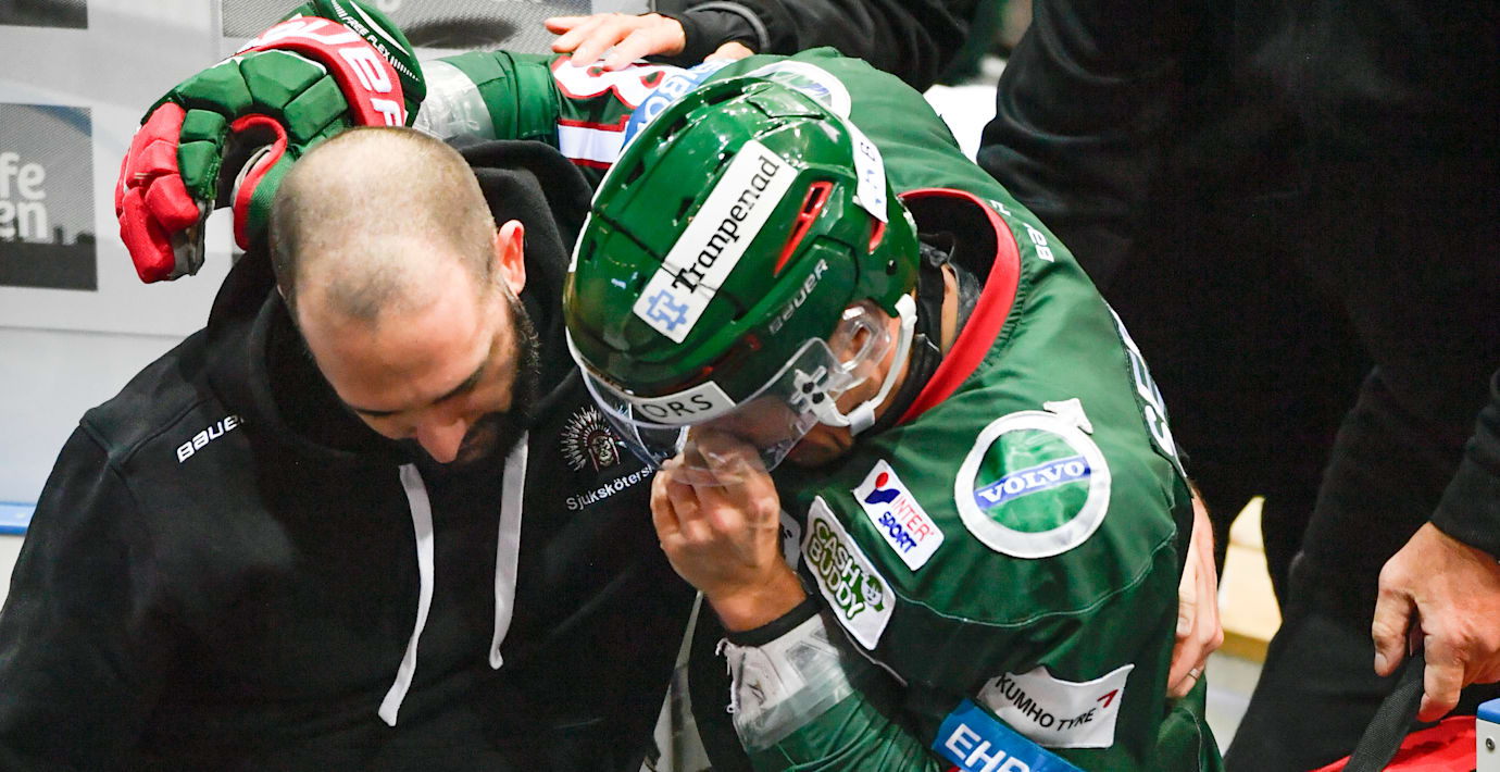 I förra veckans match mot Malmö fastnade Lasch med skridskon i sargen och vred foten. Han leddes av isen i smärtor.