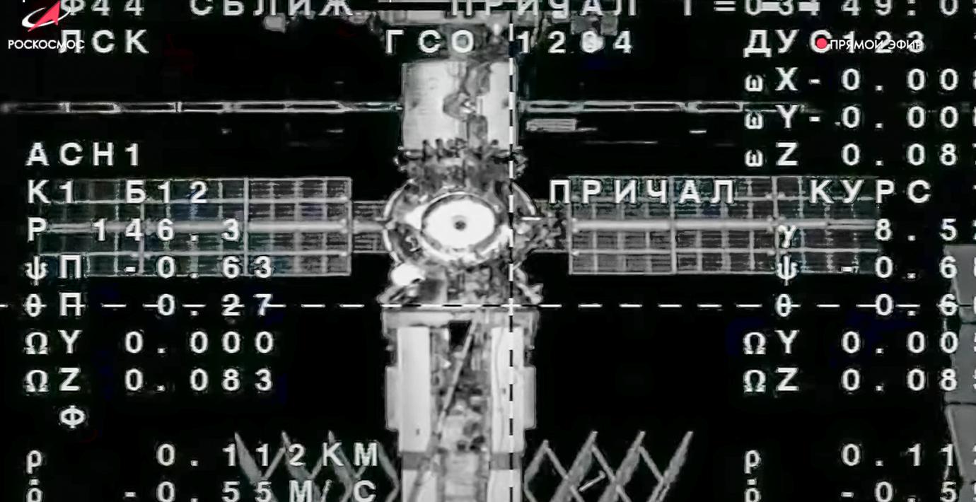 I natt dockade den obemannade ryska Sojuz-kapsel som sköts upp från Kazakstan i fredags med den internationella rymdstationen ISS, rapporterar AFP.