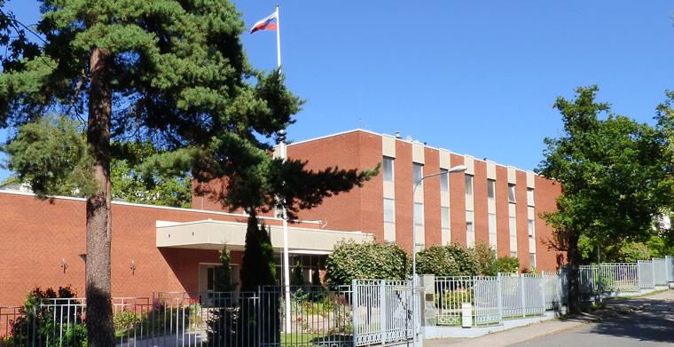 Natten mot lördag utsattes den ryska handelsrepresentationen på Lidingö för en färgattack, skriver Rysslands ambassad i Stockholm.