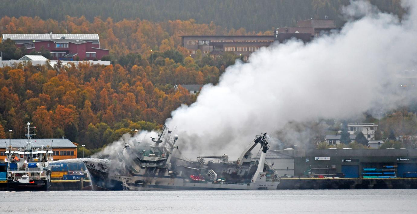 Den brinnande Trålaren i norska Tromsø har kantrat, rapporterar NRK. Ombord på fartyget finns 200 000 liter olja och åtgärder har vidtagits för att begränsa eventuella utsläpp, säger Kustbevakningens beredskapschef Johan Marius Ly.