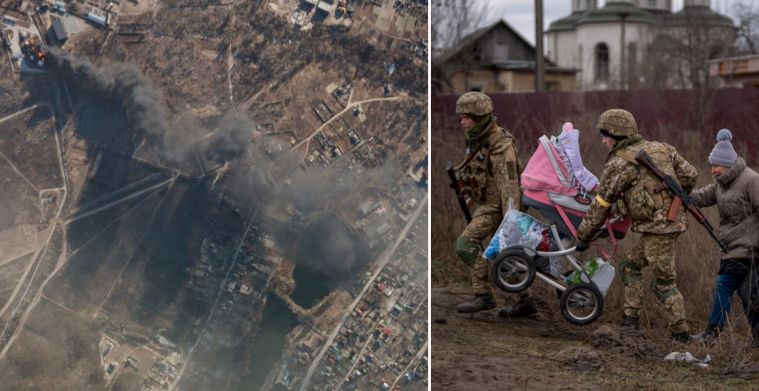 Nya satellitbilder antyder samtidigt att rysk militär skjuter mot bostadsområden i stadens utkanter, rapporterar Sky News. Bilderna från företaget Maxar Technologies visar hus i brand. Bland annat syns stor förstörelse i staden Moschun, nordväst om Kyiv, och bränder på flygplatsen Antonov International Airport.