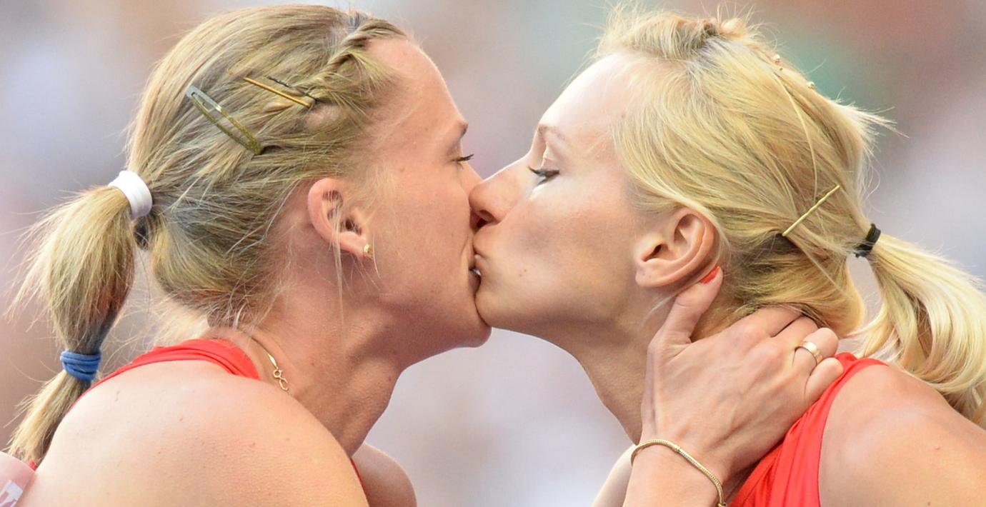Ryska stafettlöparna Ksenija Ryzjovads och Julia Gusjtjinas kyss på prispallen blev omedelbart en snackis. Var det möjigtvis en protest mot landets anti-gaylagar? Nej.