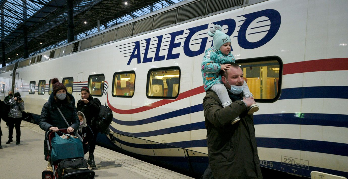 Då ryska flyg har portats från det europeiska luftrummet anländer de flesta med tåg eller bil, vilket har gjort att tågbiljettpriserna skenar.