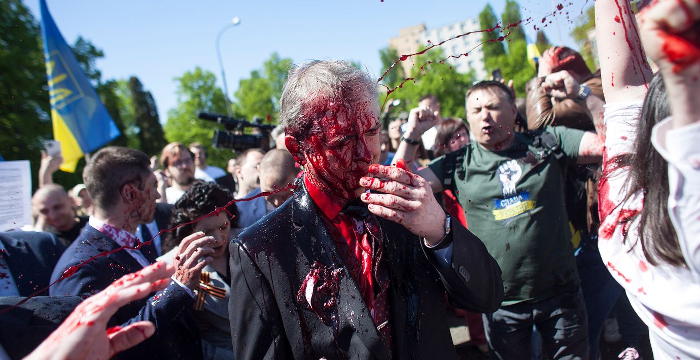 Ryssland kräver en officiell ursäkt från Polen efter att Rysslands ambassadör i landet, Sergej Andreev, blev attackerad med röd färg av aktivister i Warszawa den 9 maj, rapporterar flera medier.