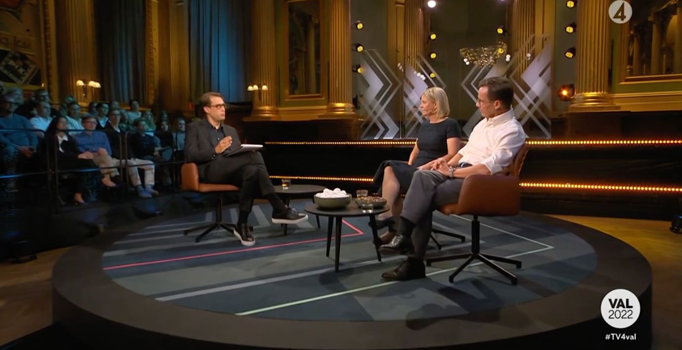 Efter den intensiva statsministerduellen rundade Magdalena Andersson och Ulf Kristersson av den sista kvällen före valet med ett mera lättsamt nedsnack i TV4 lett av Niklas Källner. Stämningen vad god och partiledarna skrattade en hel del.