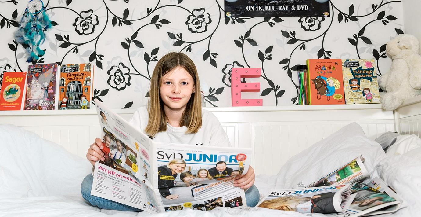 Enligt en ny studie från Statens medieråd fortsätter barn och ungdomars läsning att minska. Ellie Backman, 10 år, följer inte den statistiska kurvan. Hennes läsintresse har med åren bara ökat. Anledningen? SvD Junior – Sveriges enda nyhetstidning för barn.