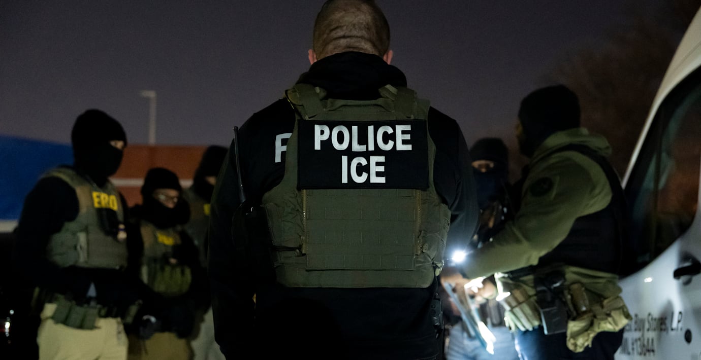 Så låtsas ICE gripa brottslingar inför Trumps bas