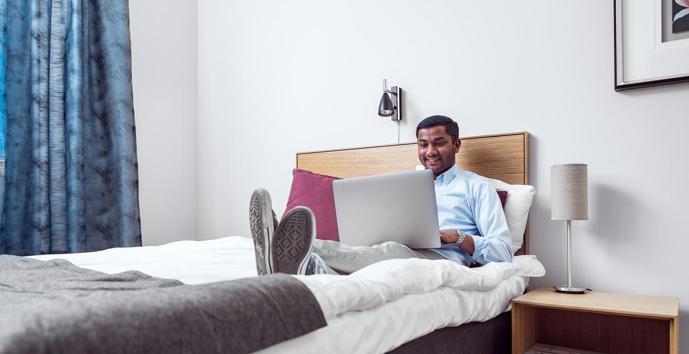 – Säg att man betalar snitt 1 200 kronor per natt för ett hotellrum. Om företaget har fler än 10 nätter i månaden på annan ort är en företagsbostad ett billigare boendealternativ, säger Helene Johansson, marknadsansvarig på Företagsbostäder.
