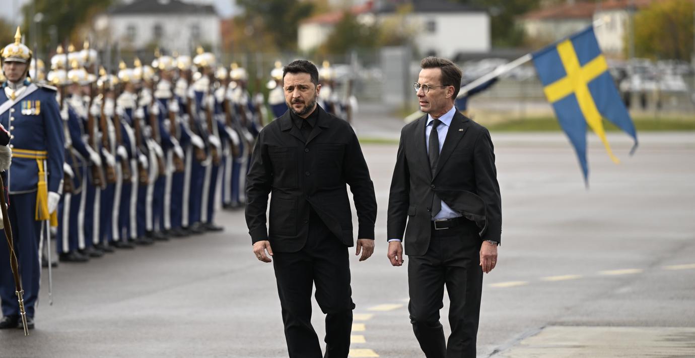 Samtalen förs mellan Ulf Kristersson, Volodymyr Zelenskyj och Saabs vd Micael Johansson, enligt Zalisjtjuk.