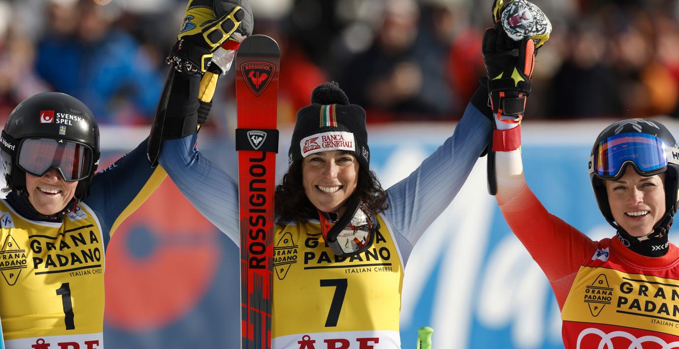 Inför andra åket ledde Sara Hector med 61 hundradelar före schweiziska Lara Gut-Behrami och italienska Frederica Brignone. Men efter andra åket blev ordningen omkullkastad. Frederica Brignone vann med 33 hundradelar före Sarah Hector och på tredje plats kom Lara Gut-Behrami.