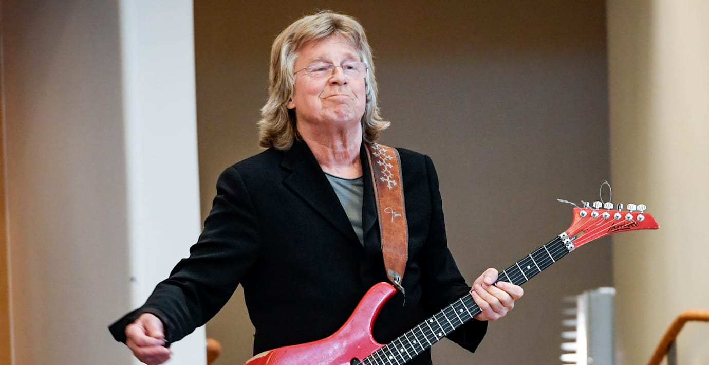 Gitarristen Janne Schaffers röda Larrivée-gitarr är en av hans favoriter. Men vid ett inbrott för två år sedan stals den och tjuvarna ville att Schaffer skulle betala 200 000 för att få tillbaka instrumentet.