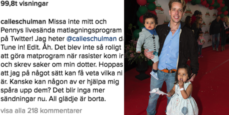 ”Det blev inte så roligt att göra matprogram när rasister kom in och skrev saker om min dotter. Hoppas att jag på något sätt kan få veta vilka ni är. Kanske kan någon av er hjälpa mig spåra upp dem? Det blir inga mer sändningar nu. All glädje är borta”, skrev Schulman senare på Instagram.