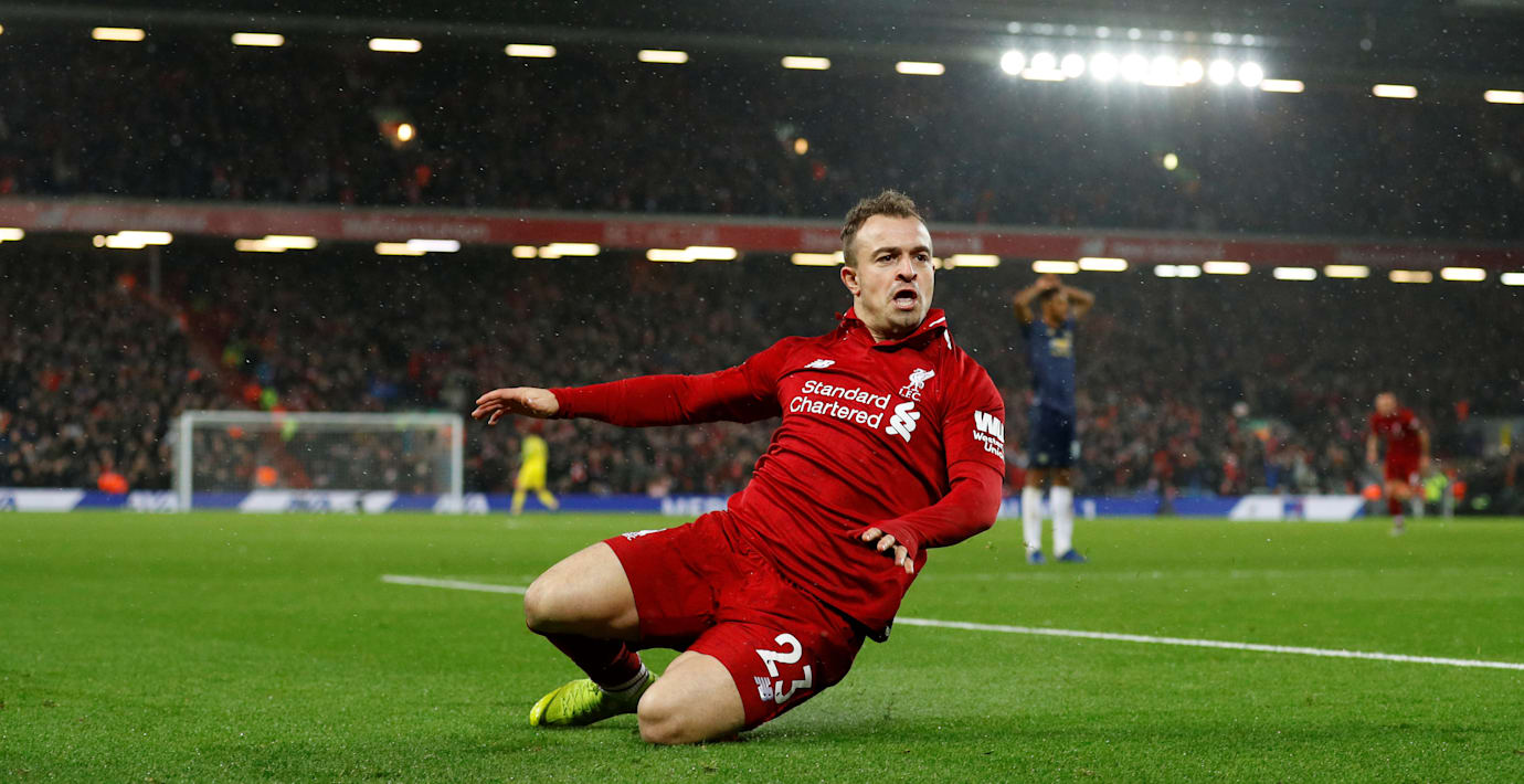 Liverpool vann rivalmötet mot Manchester United med 3–1 efter två mål av den schweiziske mittfältaren Xherdan Shaqiri. Ställningen i matchen var 1–1 med drygt 20 minuter kvar då Shaqiri blev inbytt och slog till med det första målet som studsade via ribban in i mål. Åtta minuter senare slog 27-åringen till igen från ett liknande läge utanför straffområdet.