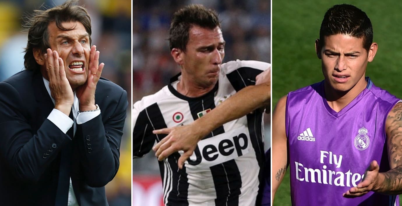 Arkivbilder: Antonio Conte, Mario Mandzukic, James Rodriguez. (TT)