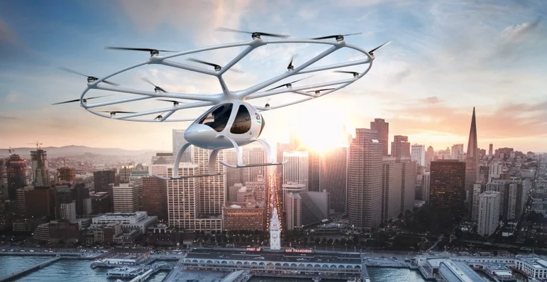 Volocopter stöds ekonomiskt av bland annat Daimler, Intel och Geely och de farkoster man använder sig av är ett slags drönarliknande helikoptrar som utöver piloten kan transportera en person. På mellan fem och tio års sikt hoppas man kunna erbjuda helt självkörande farkoster.