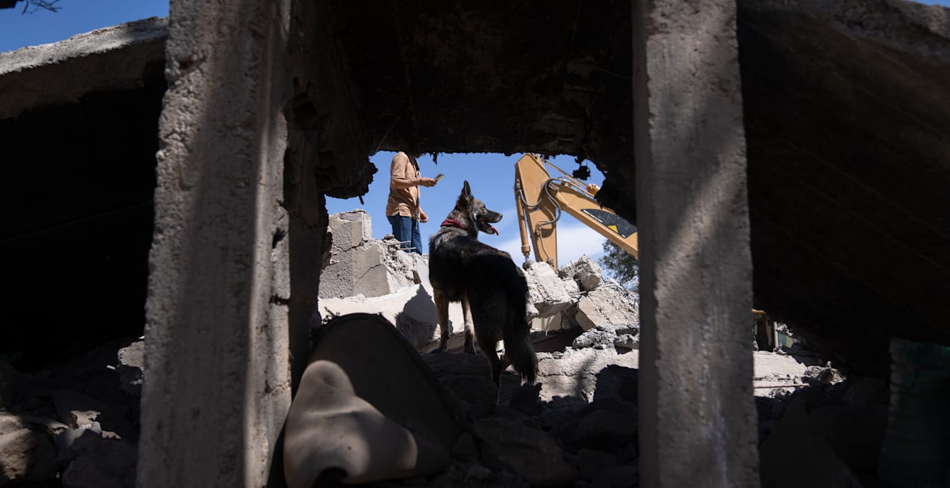 Räddningshundar söker fortfarande igenom rasmassorna efter jordbävningskatastrofen i Marocko i fredags.