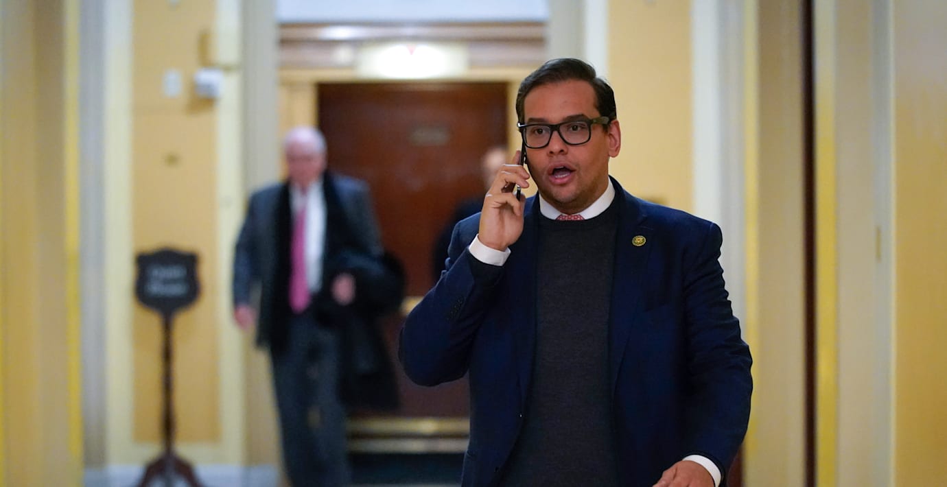 Representanthusets talman Kevin McCarthy ser ut att fortsatt hålla Santos om ryggen.