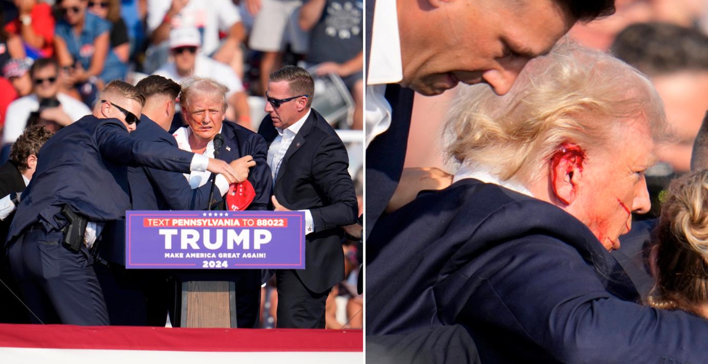 Trump skottskadad på kampanjmöte – sköts i örat