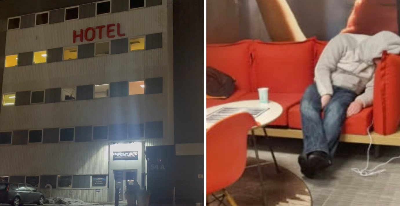I en video som SVT fått ta del av kan man se ett litet barn springa runt på hotellet samtidigt som det ligger utslagna personer i de gemensamma utrymmena.