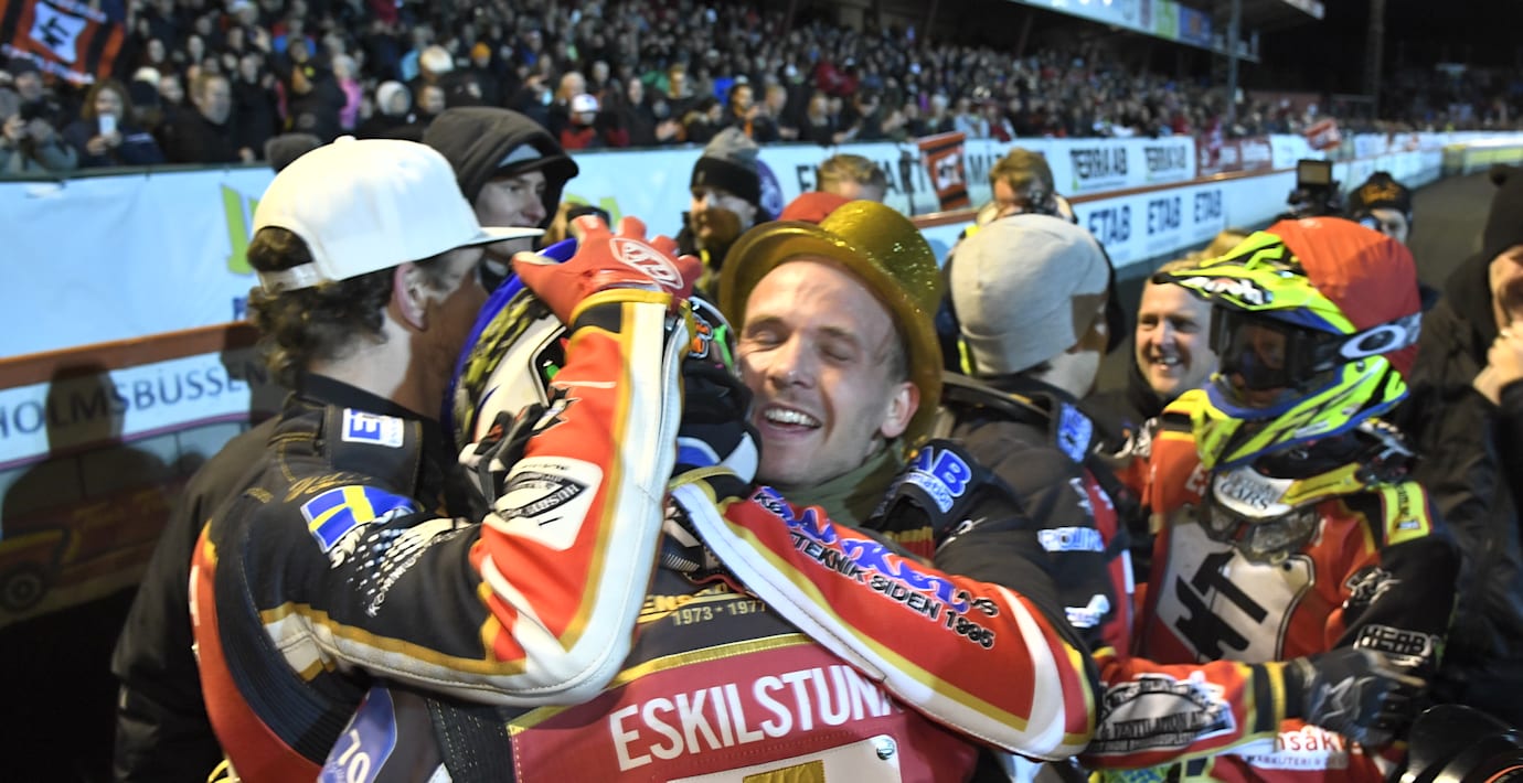 Smederna skaffade sig ett litet grepp om guldet redan i förra veckan då man besegrade Dackarna med 46-44 på bortaplan. Smederna säkrade sedan guldet i det tolfte heatet av femton.
