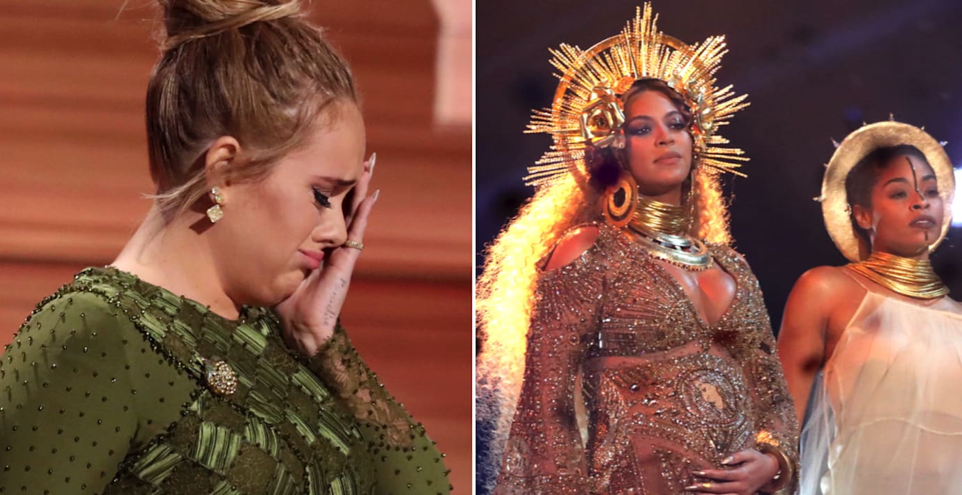 Adele blev ”överbelönad” på Grammygalan och som ett resultat tvingades hon bära skammen för juryns rasistiska skygglappar. Det skriver Slate Magazines Carl Wilson om att den brittiska sångerskan ville dela priset med Beyoncé när hon vann den tyngsta kategorin på nattens gala.
